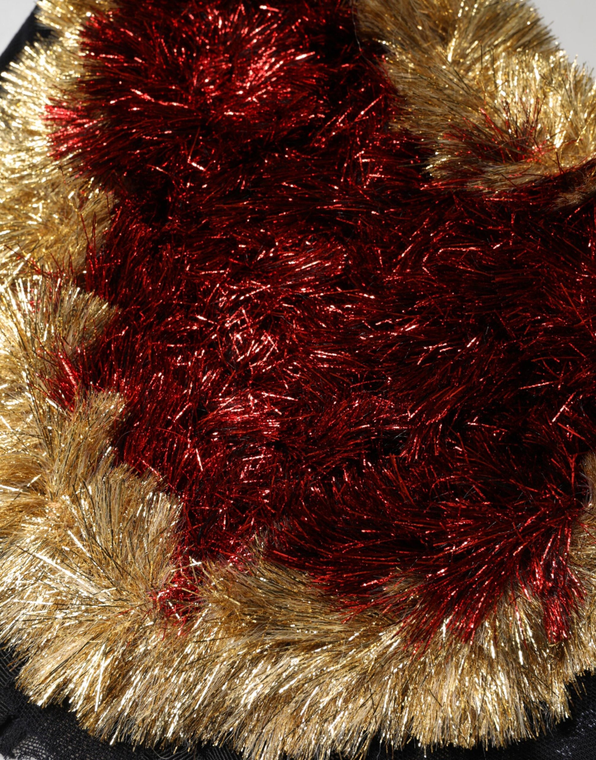 bustier top features a black tinsel texture adorned with a signature gold heart embellishment. Designed in a structured corset silhouette, it captures the brand’s iconic blend of glamour, romance, and Italian craftsmanship.