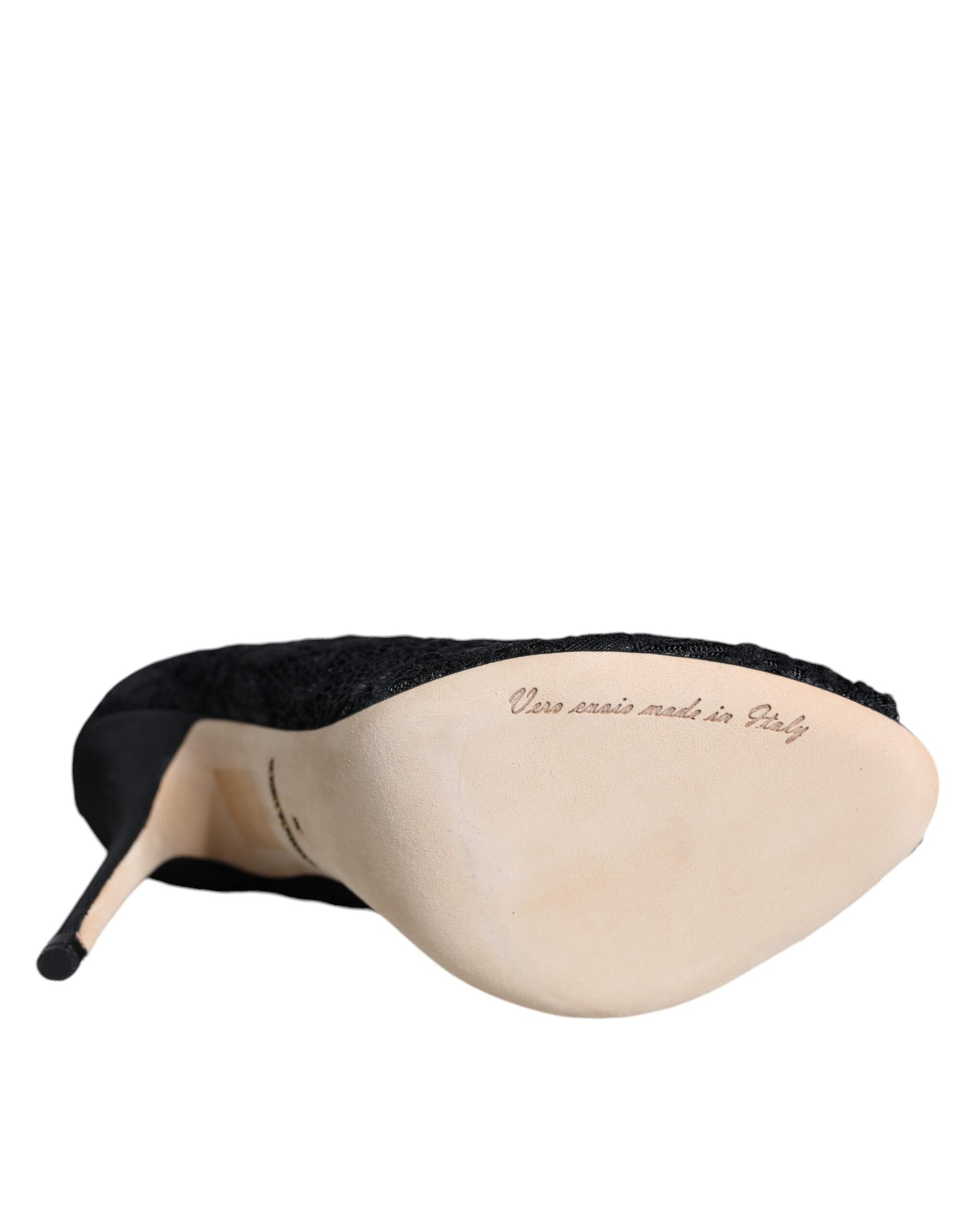 Black Lace Stretch Heels Mid Calf Boot Shoes