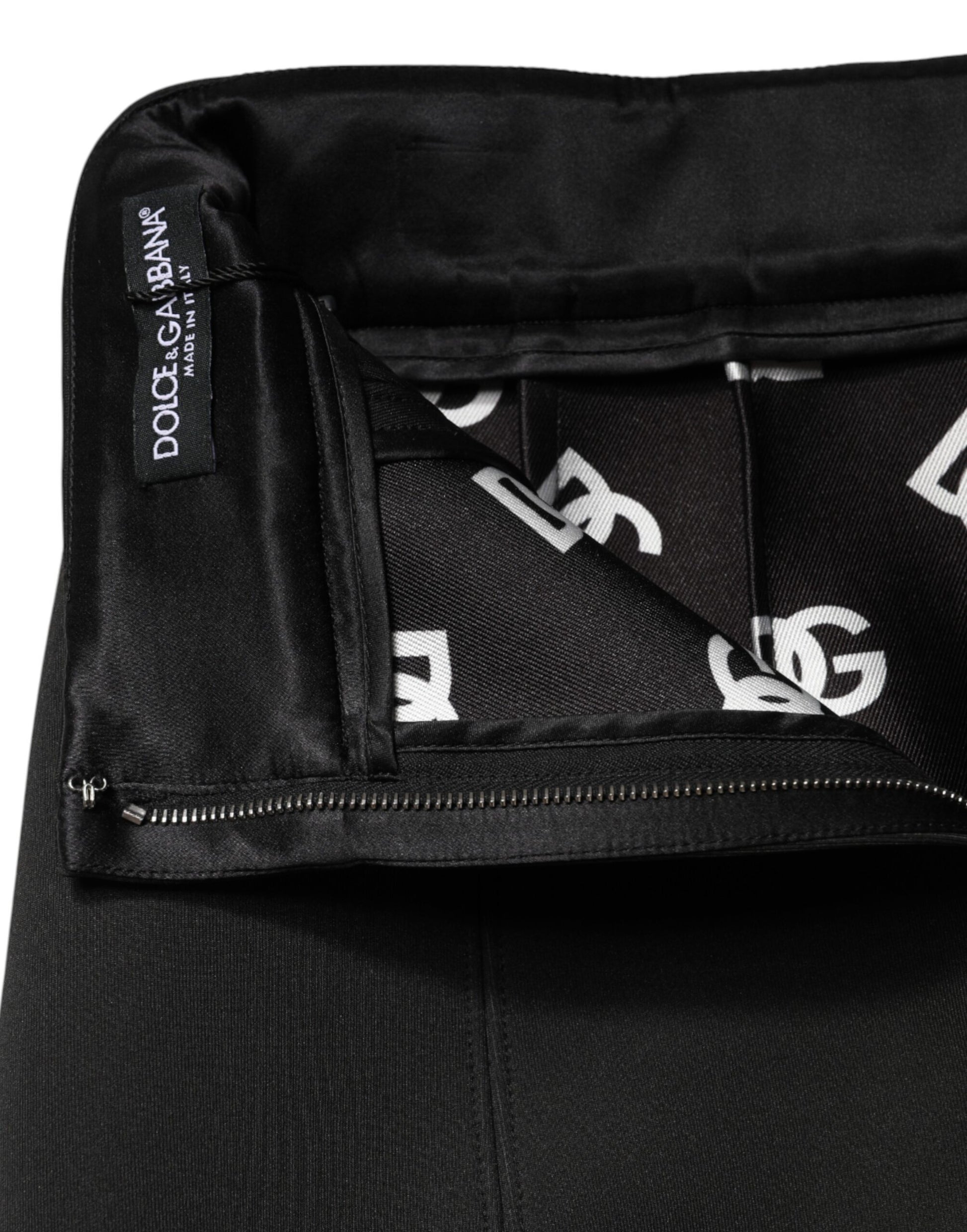 Black Nylon Pencil Cut High Waist Mini Skirt