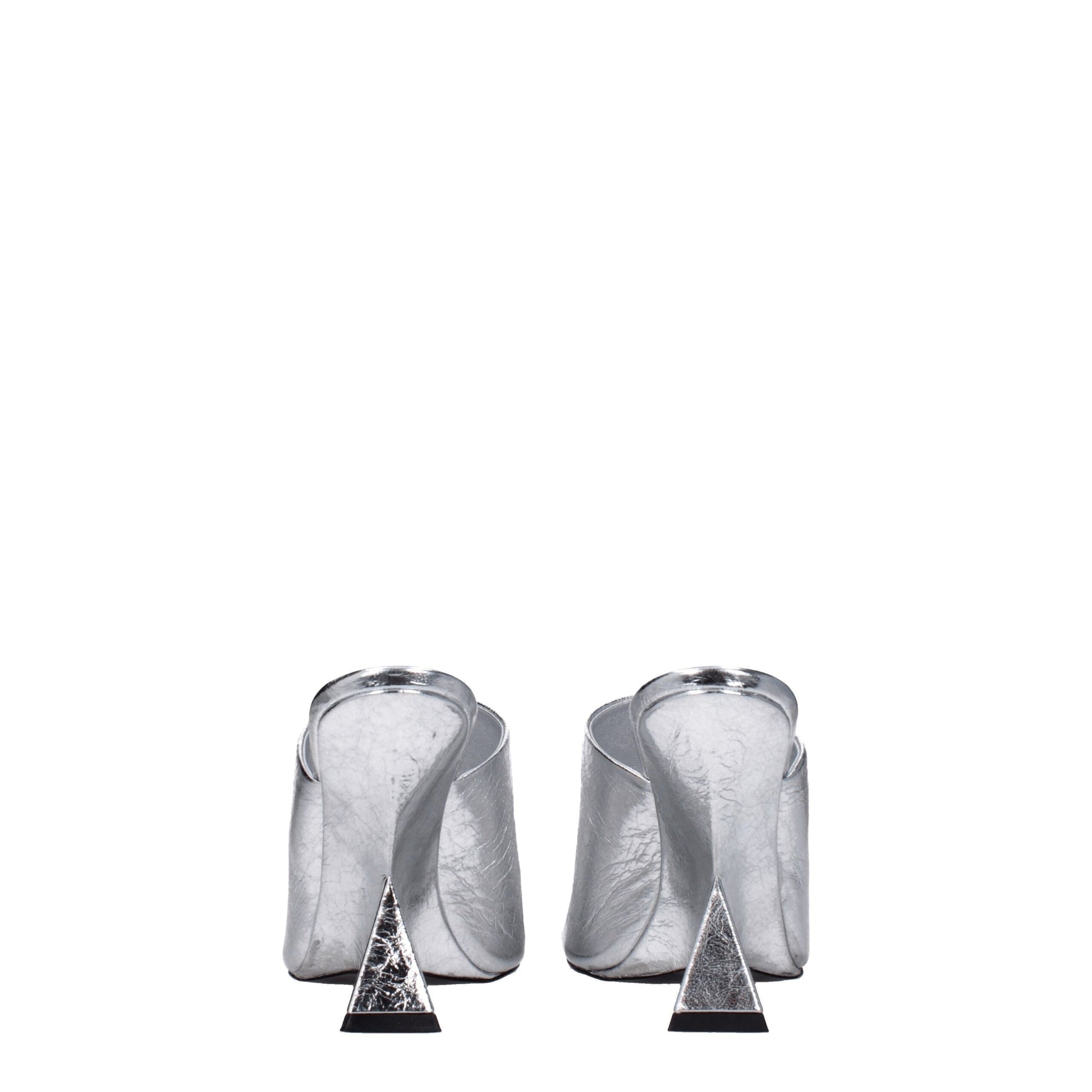 The product with MPN S634L070002 and code F79194 leather in silver is a sandals designed by The Attico. It has features like vintage effect.