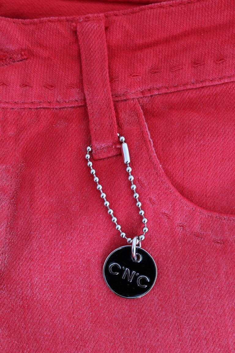 Red Cotton Stretch Slim Jeans