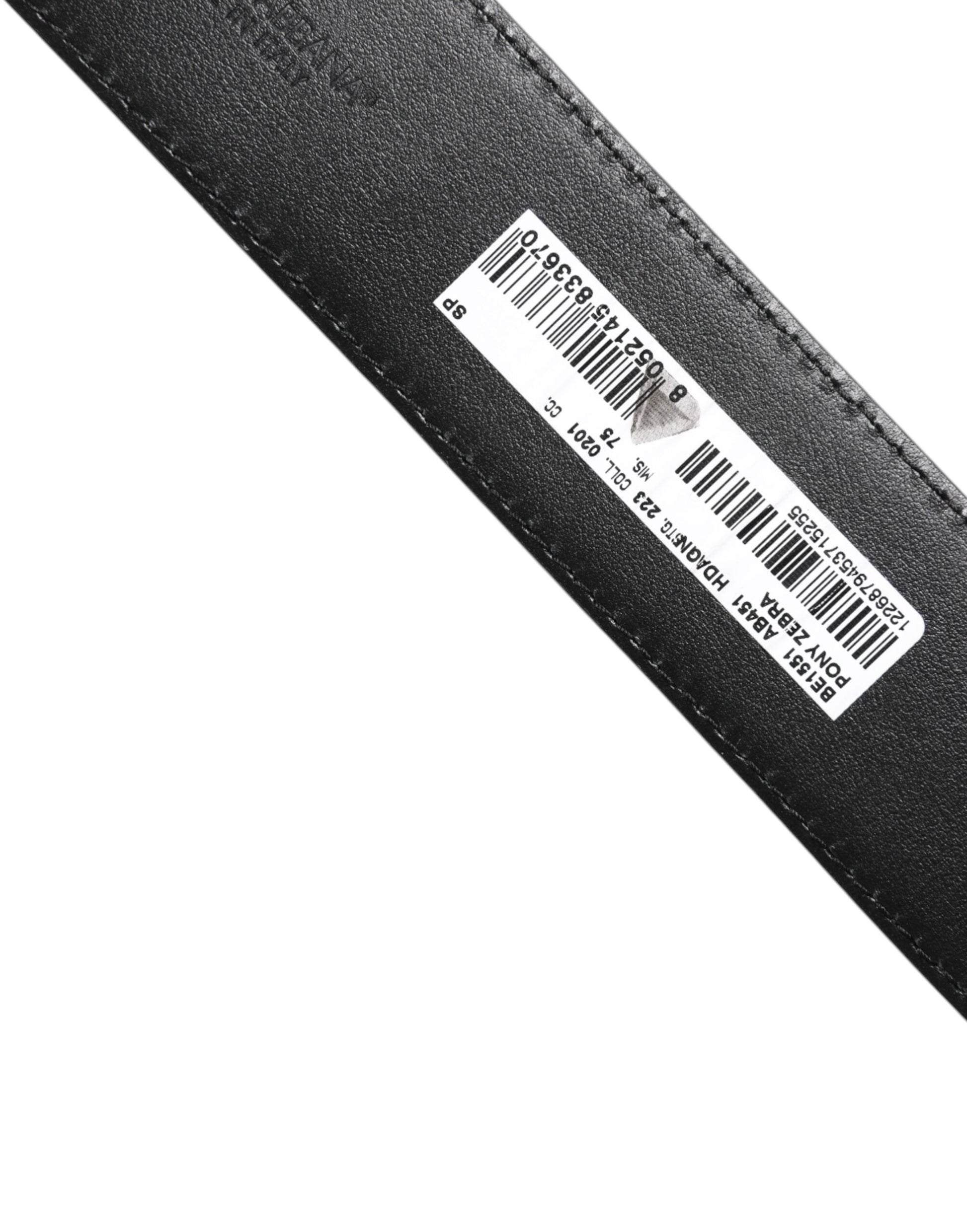 White Black Leather Zebra DG Crystal Buckle Belt